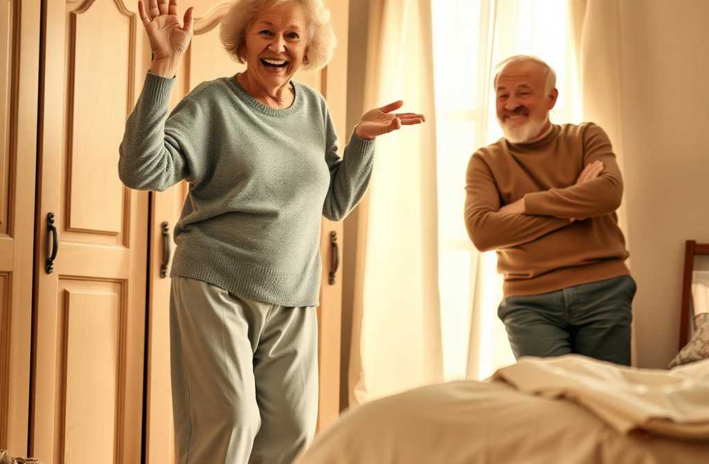 І тут сталося диво. Баба Оля зірвала з себе ковдру, рвучко сіла, а далі — і взагалі встала! Повільно, але твердо пішла до шафи.