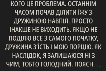 Виходжу, а він стоїть і чекає. Бере в мене пакет, помічає, що щось не так по вазі, заглядає всередину і здивовано питає: А де решта продуктів?