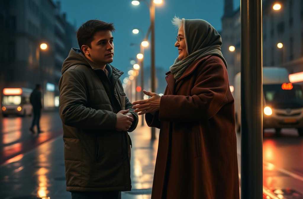 Хлопець хотів наполягати, але саме тоді з’явився автобус. Коли він зайшов всередину, жінка вже повільно йшла в протилежному напрямку, не чекаючи подяки.