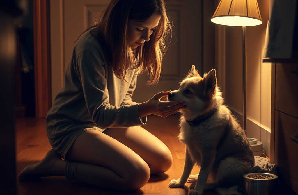 Дома я постелила стару ковдру біля батареї. Вода, корм у мисці. Він підійшов, понюхав, сів, подивився на мене, потім на двері. Довго. Ніби перевіряв, чи замкнено.