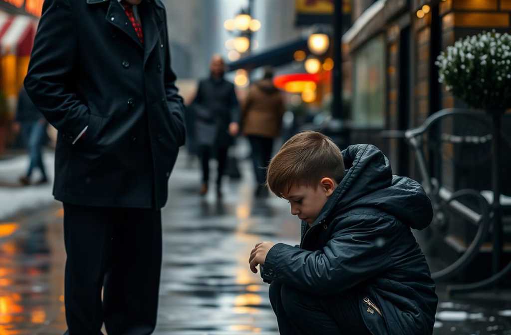 Він не помітив хлопця – аж поки маленька тінь не з’явилася біля його блискучих чорних черевиків.