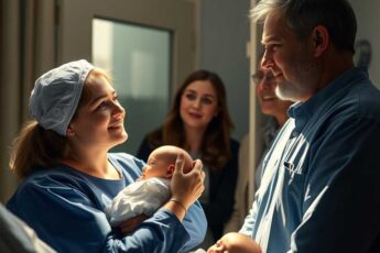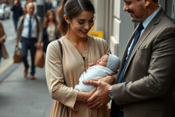 Він стає на колінах біля столика, який розташував на тротуарі, і тихо підганяє свою новонароджену дитину.
