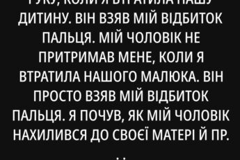 Коли я вперше побачила, як він ставиться до тебе, я подумала, що саме таке виховання створює чоловіка, якого я хочу у житті. Перед шлюбом ти сказала одне речення, яке окреслило мій майбутній шлях. Можливо, ти його забула, а я його памятаю і шкодую, що тоді не надала твоїм словам тієї ваги, яку вони заслуговували. Це було: «Мій син звик бути тільки з однією жінкою». Ці слова сутність того, що ти вклала в сина з дитинства.