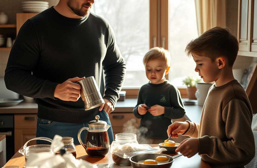 «Хлопці» два десятирічні сини-близнюки сплять у сусідній кімнаті. Дві зменшені копії батька, з однаково розплющеними ротами, наче дивляться один сон.