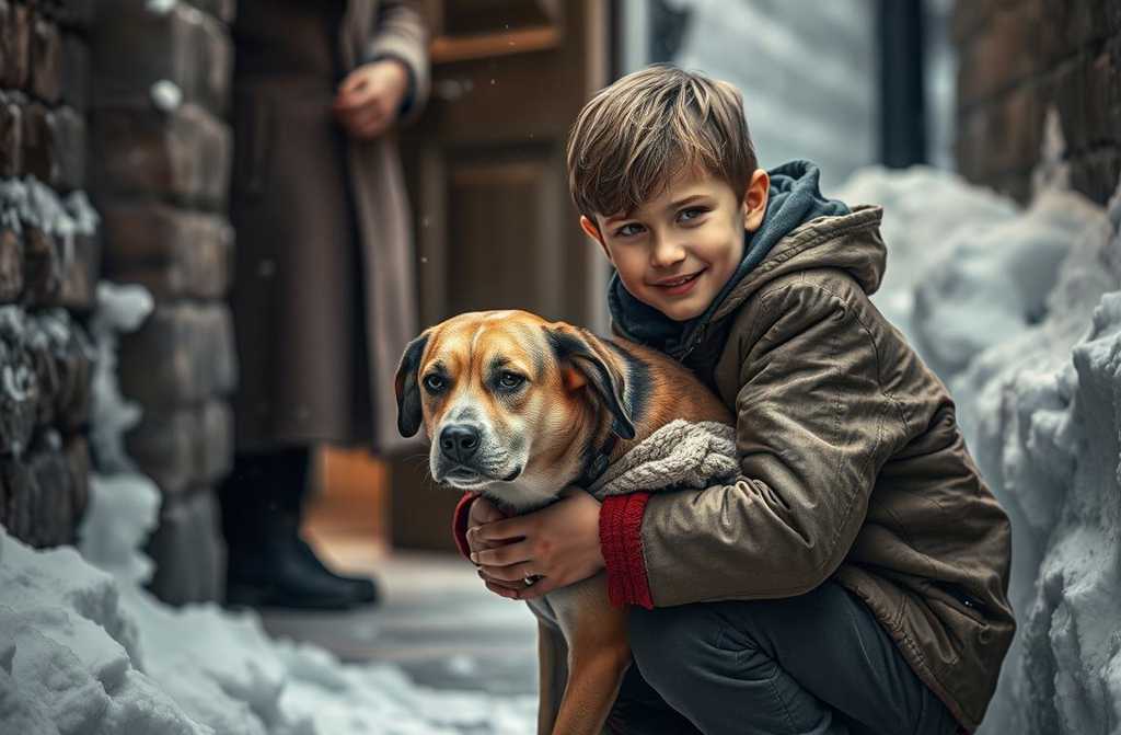 Того вечора, розкидаючи рюкзаки, Тимофій і його друг вирушили на прогулянку. Було тепло для Київської осені, але морозик ще тримався, сніг не танув. Дороги назад не хотіли, тож хлопці катаються з горки на санках і просто на ногах, уявляючи себе сноубордистами. Що їх підштовхнуло відійти від тротуару і йти вузькою стежкою біля будинку? І що заставило Тимофія оглянутись і побачити в щілині сміттєвого люка пару блискучих очей? Спочатку він подумав, що це кішка. Підійшли ближче, схилилися Собака.