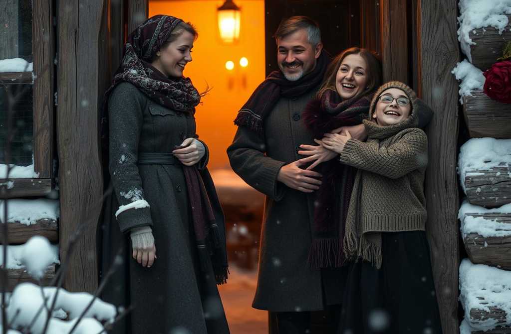 Страху не було, проте в таку погоду важко уявити, хто може зайти до їхнього будинку, що стоїть на краю села біля лісу. Відчинивши двері, Оленка побачила чоловіка, який буквально впав у сніг і ледве тримався на ногах. Вона кликнула сина.