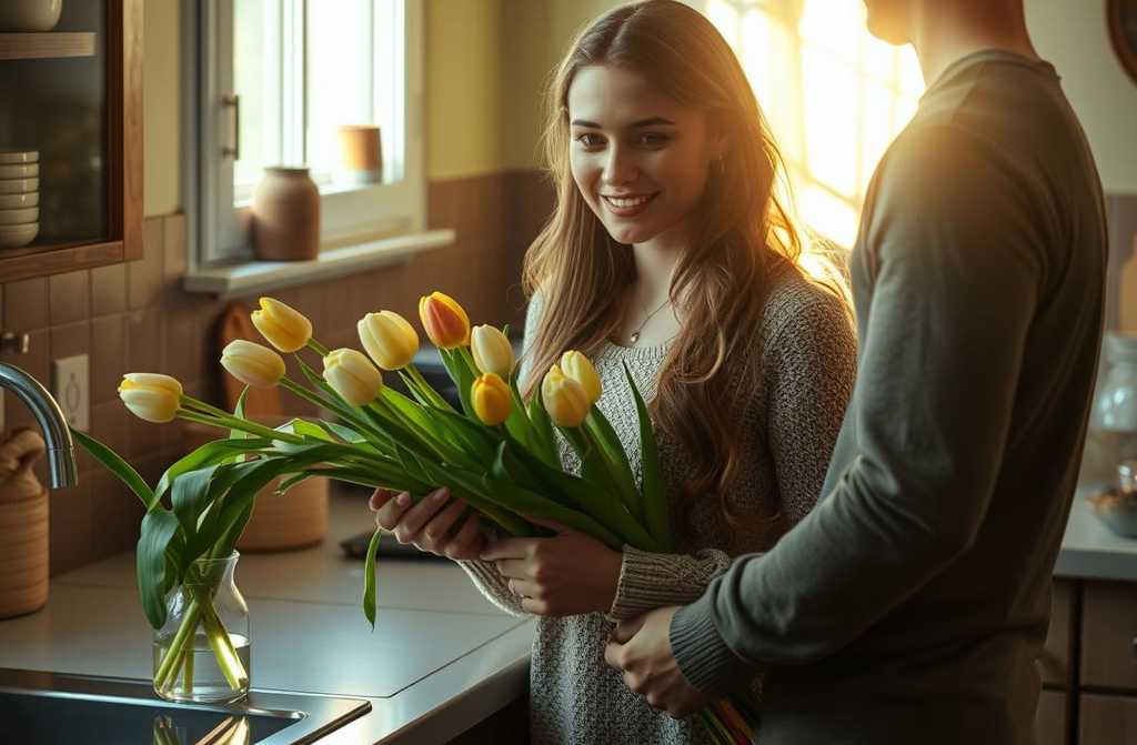 Так, у машині. А це для вас, Олексій дістав з пакету невеликий букет тюльпанів і простягнув його.