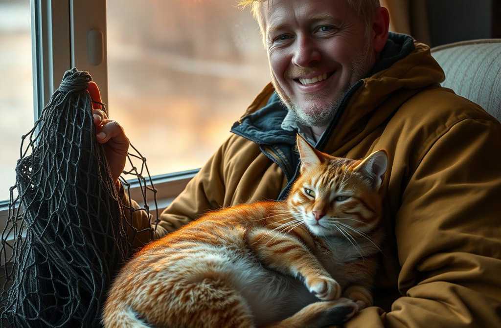 Виловити кота було нелегко він дряпався, виривався, мов чорт із пекла. Та врешті його втягли на борт, де він одразу згорнувся клубком.