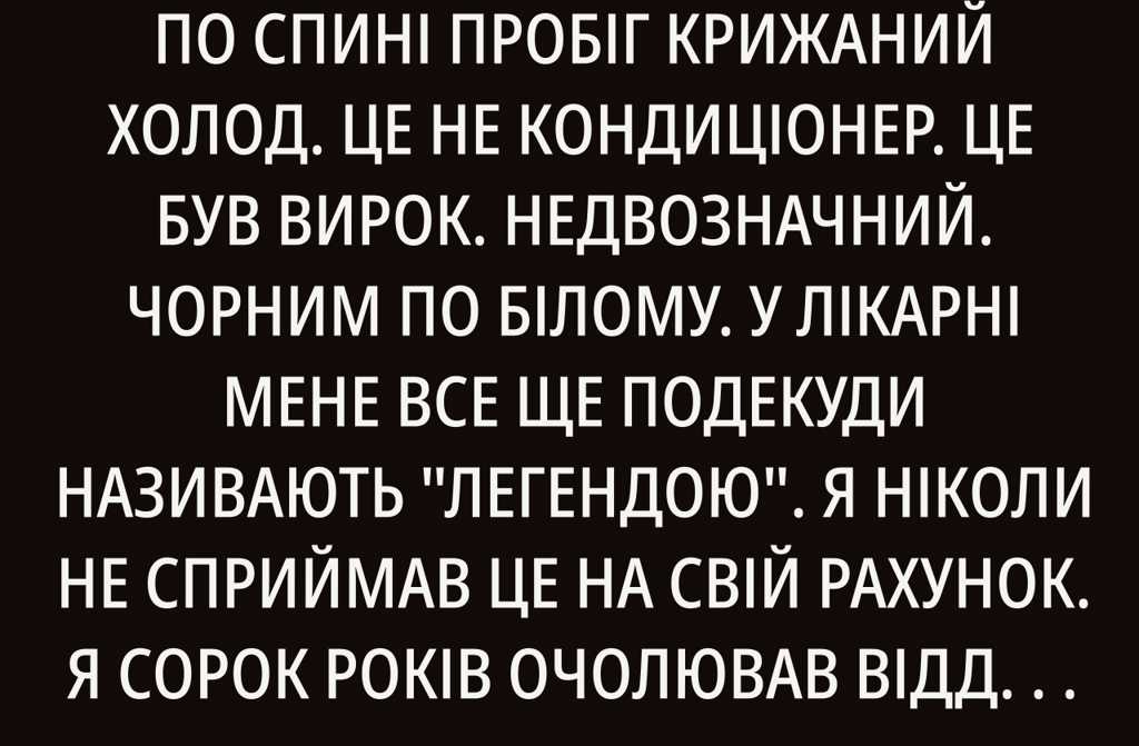 У лікарні мене все ще подекуди називають “легендою”. Я ніколи не сприймав це на свій рахунок.