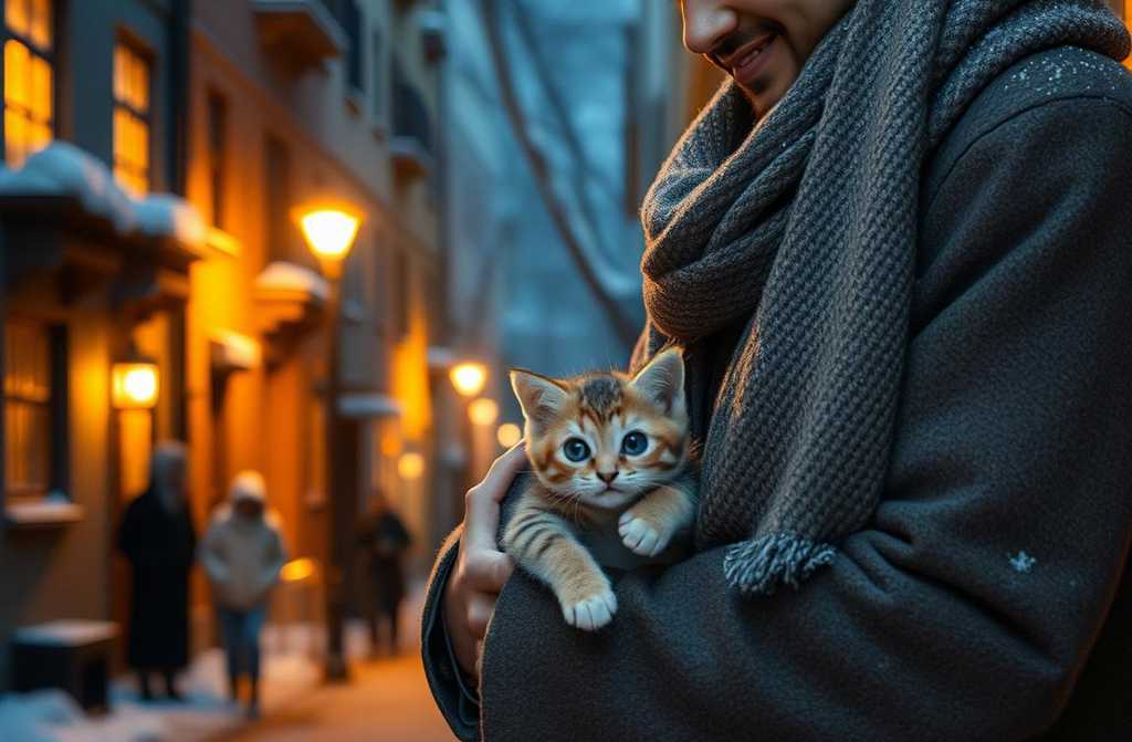 Оленко, дивись, який гарний котик! Бідненький, мабуть, собаки налякали! Я заберу його додому! Годуватиму, пеститиму, доглядаю!