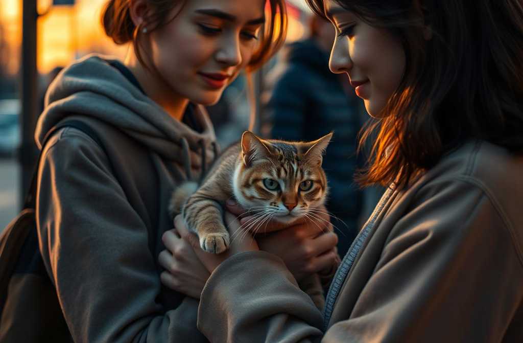 Жінка нахилилась просто так, щоб погладити Але кішка, схопивши передніми лапами людське запястя, вже підскакувала по руці і зупинилася лише біля плеча. Прижалась мордочкою до «передньої» ямки і міцно вчепилась кігтями в одяг, не наміриваючись відпускати цю жінку.