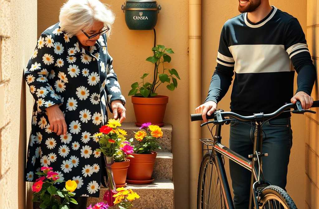 Тамара Петрівна стояла в під’їзді, стискаючи стару металеву лійку, ніби це остання зброя. На сходовій площадці першого поверху, де звичайно виблискували її глиняні горщики з петуніями, гераньою та фіалками, панував розвал: три горщики розбиті, ґрунт розсипався по зношеному ламінату, а листя валилося, як після бурі. Під’їзд пахнув вологістю, пліснявою і легким металевим присмаком від поручнів. З квартири 12 дувала електронна музика з важкими басами. Тамара Петрівна, у квітковому халаті з ромашками і сірих, зібраних у тугий хвіст, глянула на винуватця — новенький чорний велосипед, прикріплений ланцюгом до поручнів, прямо на місці її клумби.
