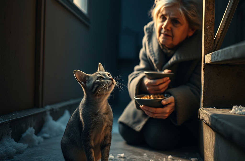 “На, їж. Бідолашне створіння, не бійся, не відберу”, зітхнула вона, спостерігаючи, як кішка жадібно ковтає гречку з печінкою.