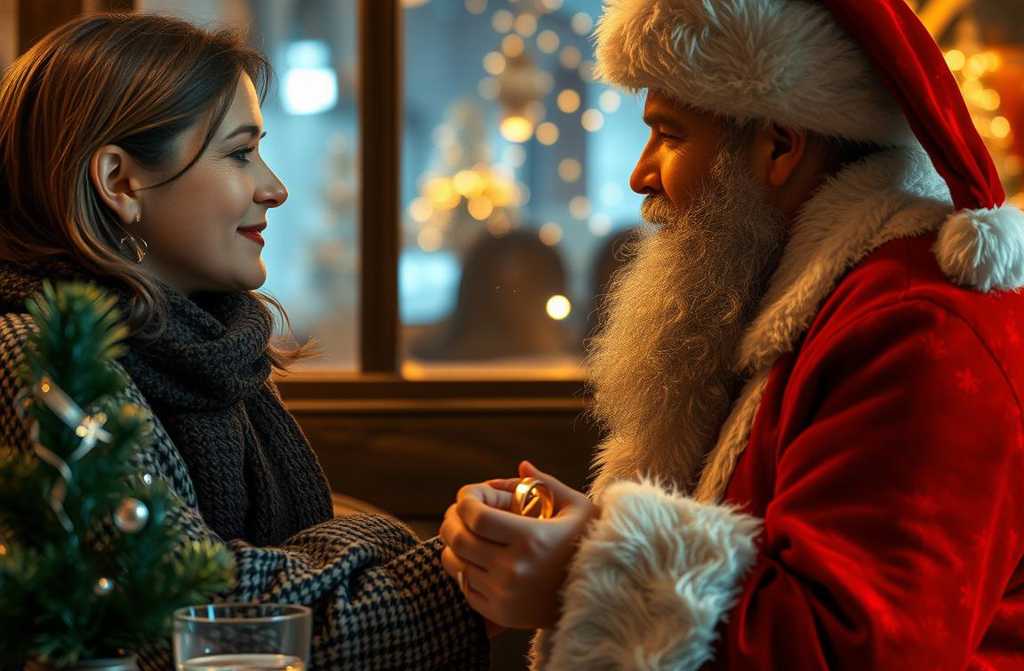 Тоді прийми цей обруч у день нашого заручення, 31 грудня, на ніч перед Новим роком, каже Іван, вкладаючи кільце на її палець, дарує квіти і цілуючи.