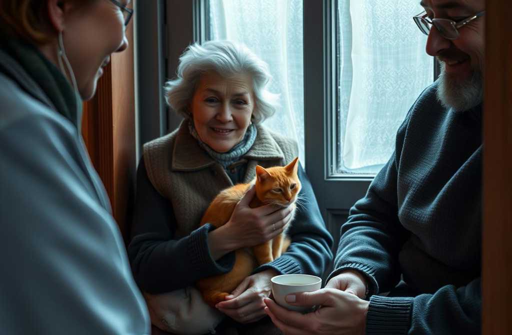 Там бабуня з котом. Раніше хтось її навідував. А тепер тільки листоноша. Вона каже, все добре, а ви подивіться Кот кожен день о пятій ставить лапу на поріг і стоїть, ні на хвилину не рухається. Часами. А бабуня ніби ніщо.