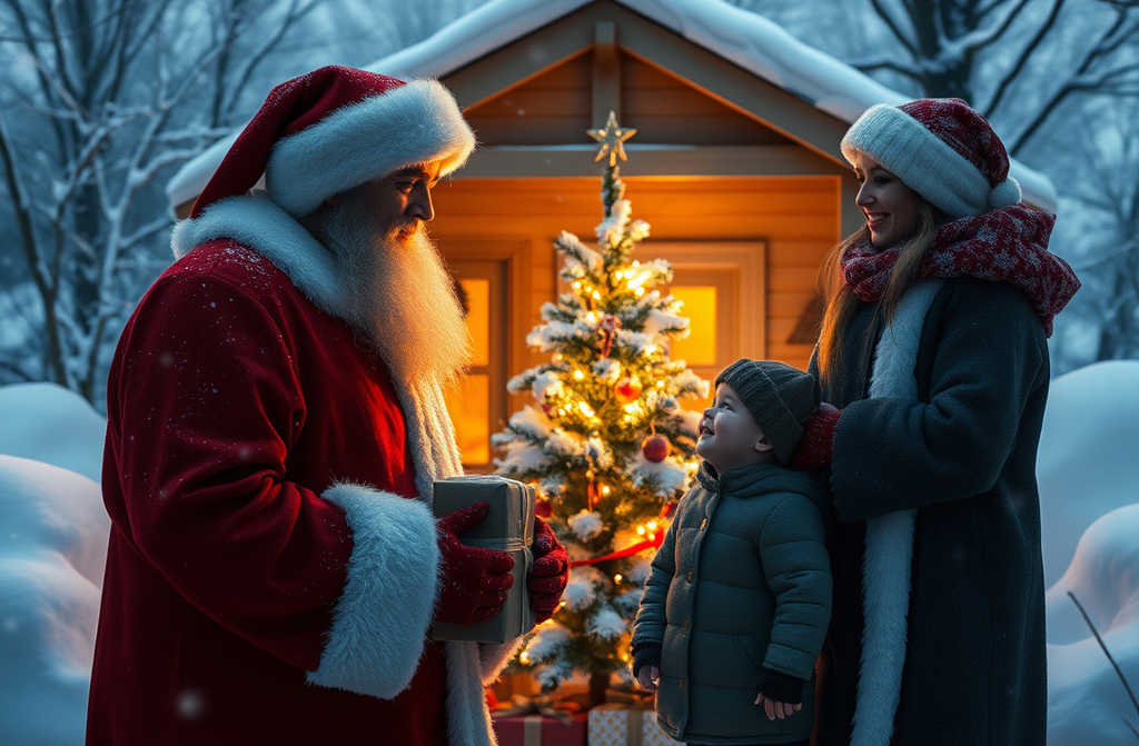 Ввечері Варя й Денис вбралися у святкове, склали всі подарунки у мішок, ялинку поклали до багажника й поїхали за вказаною в листі адресою. Син Олексій лишився з бабусею.