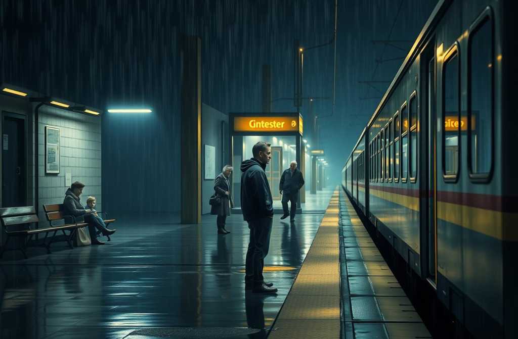 Я пройшовся вздовж платформи, наче сподіваючись знайти інший шлях, інший шанс, інший поворот. Але крім мокрого асфальту, каламутних калюж і власних відблисків у них, нічого не було. Дощ лише починався — дрібний, холодний, майже непомітний. Я зайшов у зал чекань — старий, продувний, з тріщинами на стелі, запахом іржі, сирості й часу, що тут застиг.