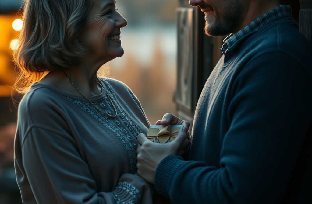 Вона обережно відкрила червоний футляр. Усередині лежали чудові золоті сережки з смарагдами, кольору її очей. Вона зраділа, приміряла їх, під кутом подивилася в дзеркало і сказала: