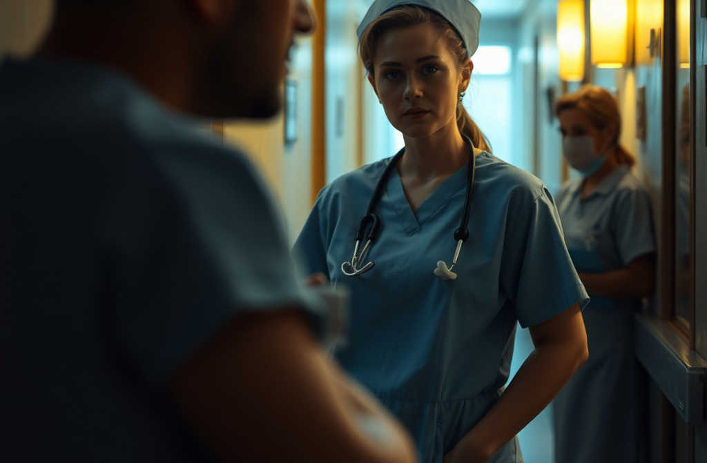 У цей момент з відчинених дверей вийшла медсестра. Молода, з втомленим поглядом, у стоптаних капцях. Вона попрямувала до нього.