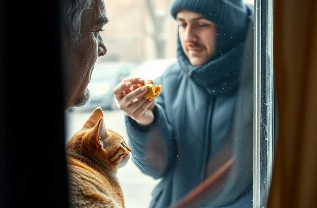 Навпаки: став потайки підкидати за вікно шматочок мяса, котлету, сосиску. Я їв. Одного разу чоловік підбіг до скляної плити, і я, трохи тремтячи, підняв лапу, притиснув її до скла і мяукнув.