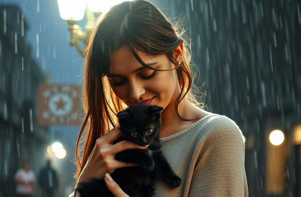 Під ліхтарем, тремтячи від холоду, сиділо маленьке чорне кошеня. Мокре, брудне, жалюгідне.