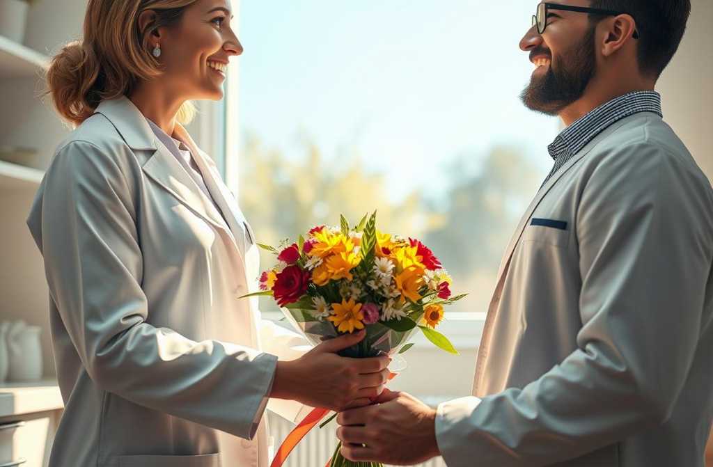 У понеділок зранку Прохор прогулявся біля клініки з великим букетом квітів, поглядаючи на годинник. Колегилікарі підходили, зацікавлено дивилися на нього, гадали, кому цей ранок присвячений.