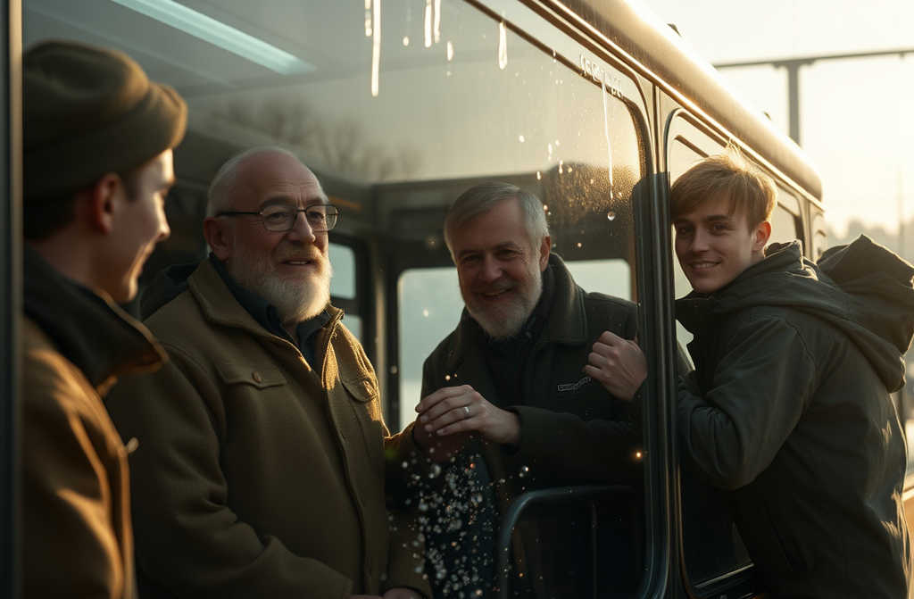 Ніч була довгою. Хлопці працювали по черзі: двоє воду приносили, один ганчірку міняв, ще інші спорожняли відра у велику бочку, що стояла осторонь схоже, не вперше тут зупинялись. Зустріли перші промені сонця вже чисто прибраним тролейбусом. Салон блищав, навіть скло сяяло. Всі працювали мовчки і злагоджено вже зовсім тверезі та втомлені.