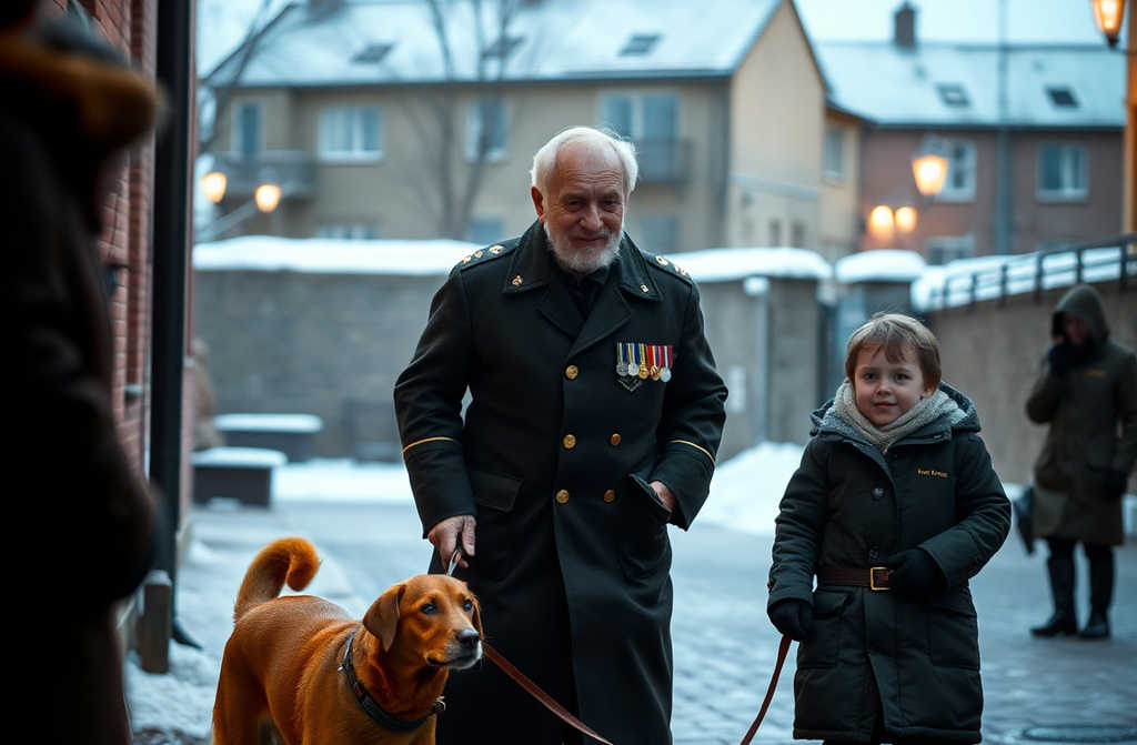 Тож щовечора люди бачили незвичну трійцю: літній чоловік у формі з орденами, хлопчина і стара руденька псина.