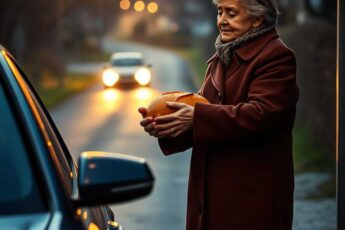 У той день, коли сусідки підходили до сходів і розповідали чутки, вона спокійно спускається, крок за кроком. Чорна спрощена сукня, підбортинки, сумка, парик бездоганно підготовлений. Тонка помада, ненав’язлива, але присутня знак, що її не зламаєш.