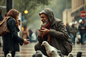 Небо тихо плакало дрібним дощем, коли люди, сховавшись під парасолями, поспішали вулицями, не звертаючи