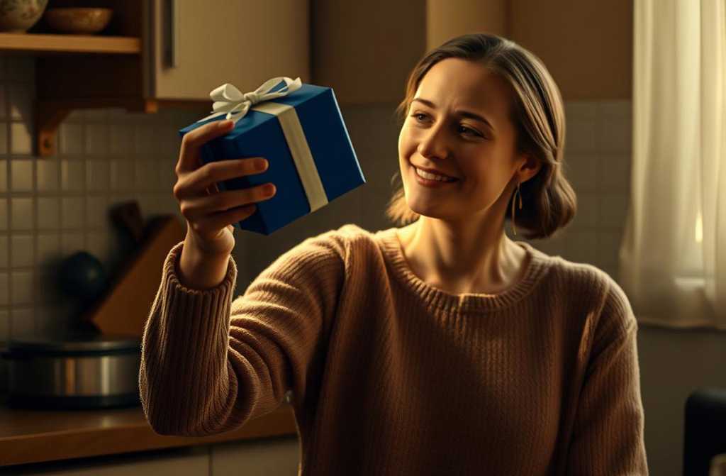 Ірина притискає коробочку до грудей, сльози нависають на очах. Вона докорює собі за недобрі думки, за те, що вважала чоловіка жадібним. Ось він, коплячи, вирішив зробити їй приємне! Так, він нарікав на мясо, бо витративши на таку красу, він спростував свою скромність. Їй стало соромно за своє вчорашнє роздратування.