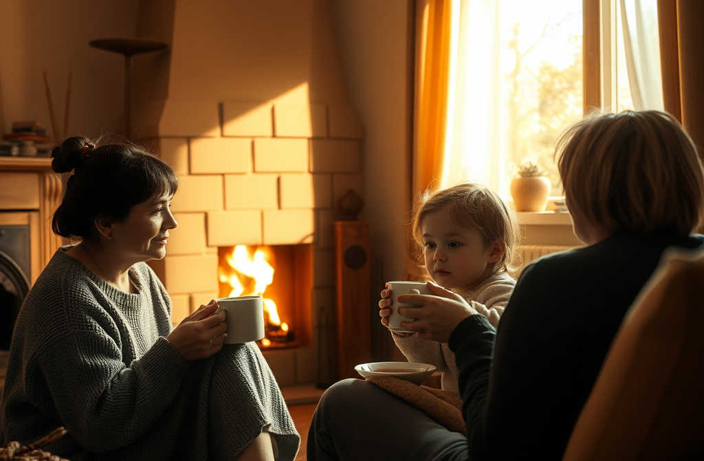 У кімнаті встановилася тиша, але тепер вона спокійна, умиротворена. Сонячні промені, що прокрадаються крізь штори, граються на поверхні кави в чашці Зоряни. Батько кашляє і тягнеться за цукерницею, навмисно гучно стукаючи ложкою цей звичний домашній звук повертає відчуття нормальності, домашнього затишку.