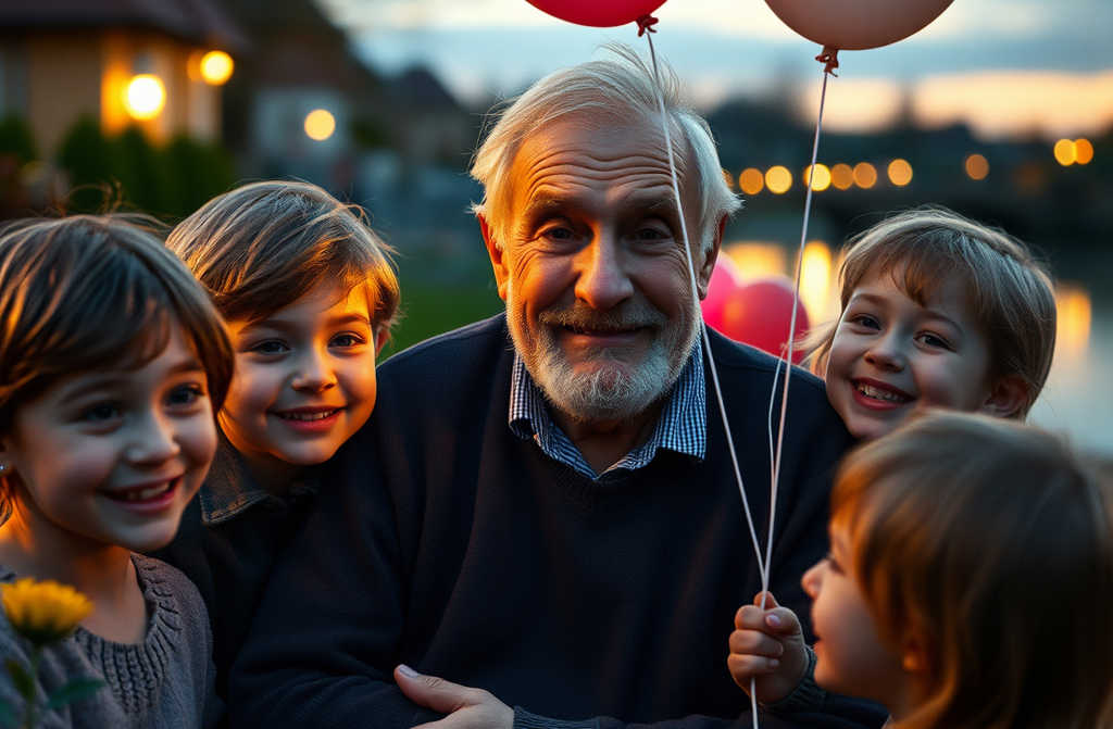 «Що це може бути?», вигукнув він, коли раптом спалахнули кілька прожекторів, розсіюючи темряву. На галявину вийшли його синовичі з дружинами, внуки, кілька родичів, а також Ольдислава, що йшла поруч з довгим чоловіком в окулярах з товстими лінзами. У всіх руках були кульки, вони дули у трубочки, інші натискали кнопки на шиплячих балонах зі стисненим повітрям. Усе одночасно гукало, махало руками, кликало в обійми: