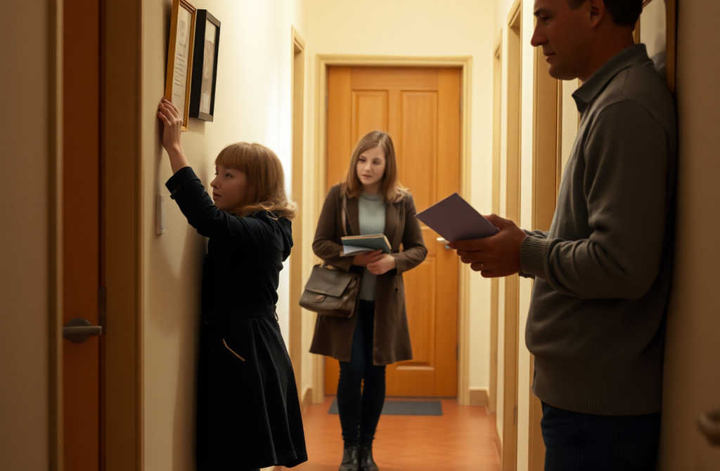 Ввечері повертається додому з продуктами і чує дивний звук у коридорі: хтось шарудить. Це її двері: замок заїдає, ключ майже не повертається. Тисне сильніше ключ провертається, але зі скреготом. Неприємно тьохкає у серці.