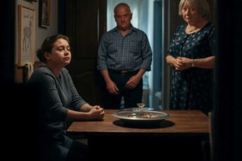 У цей момент у підїзді пролунав дзвінок у двері: двоє чоловіків у однакових куртках із портфелями під пахвами обходили квартири. Один тримав планшет, інший пачку паперів.