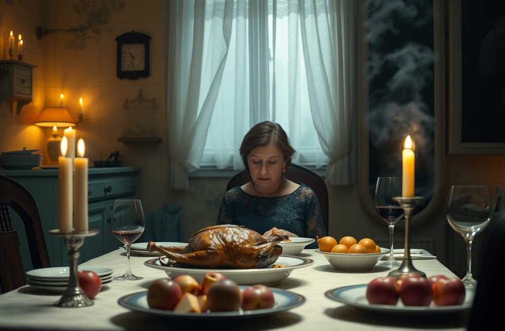 Олена поправляла білу льняну скатертину на кухні, її пальці тремтіли від втоми й хвилювання. Сьогодні було двадцять пята річниця їхнього весілля з Іваном срібна. Вона з ранку готувала святкову вечерю: у духовці тушкувалася качка з яблуками та медом, картопля з розмарином ароматно парувала, а на дошці червоніли зерна гранату для салату Іван обожнював цей кисло-солодкий смак. Кухня пахла спеціями, ваніллю від грушового пирога та легким димком від трьох свічок у мідних підсвічниках. На столі стояла пляшка червоного вина того самого «Каберне», яке вони пили на весіллі. Олена спеціально замовила його в винному магазині. Вона вдягла темно-синю сукню з мереживним коміром, розпустила коси, які зазвичай збирала в пучок, і навіть нафарбувала губи яскравою помадою чого не робила роками.