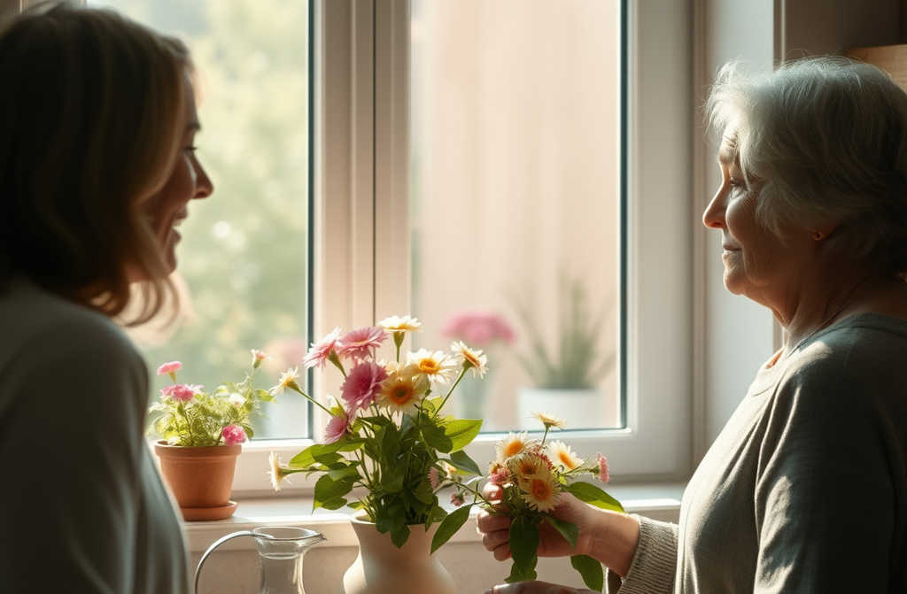 А як же нам привітатися, запитати у тебе, мамо, як ти себе почуваєш? відповіла Ганна, піднявши гілку фіалки.
