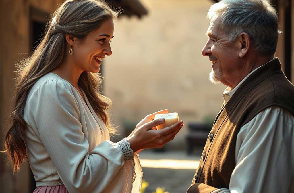 Сергій, спостерігаючи за мамою, зрозумів: ось воно, те, що розрадить душу і серце справжнє мило, яке в супермаркетах не знайдеш, навіть у великому місті дефіцит. Якщо ним помитися, одразу молодішаєш і ще красивіший (за словами бабусі). Ось ідеальний подарунок для Оленки, нічого кращого не знайдеш.