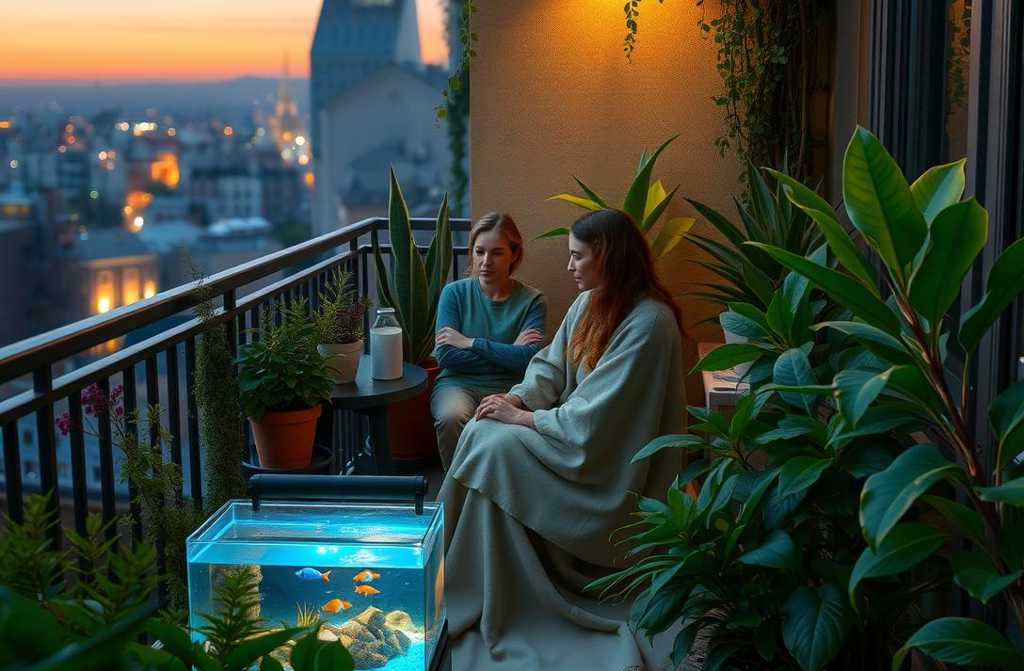 Ми з Лесею сидимо на її балконі на 15-му поверсі новобудови у передмісті Києва. Леся з батьком і бабусею переїхали сюди чотири роки тому. Її батько — юрист у будівельній компанії, що зводила цей будинок. Квартиру вибрали з просторим балконом спеціально для Лесі, щоб вона могла жити своєю пристрастю. Батько міг собі це дозволити. Балкон утеплений: тепла підлога, батареї, стіни обшиті рельєфною плиткою, приємною на дотик. Леся шалено любить кімнатні рослини та акваріумних рибок. У квартирі п’ять акваріумів — по одному в кожній кімнаті й тут, на балконі.