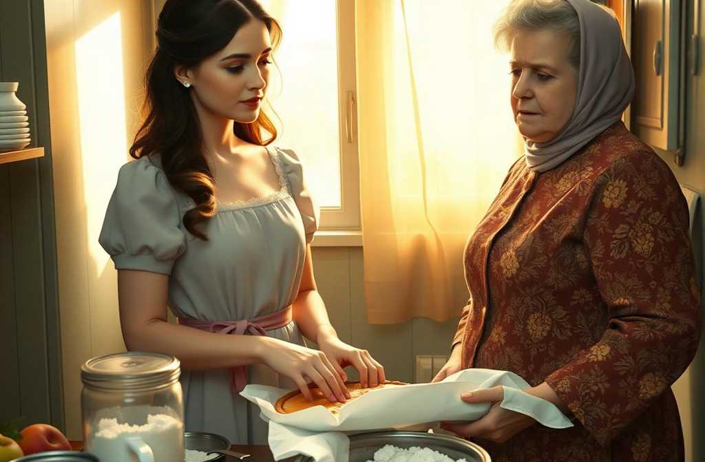 Коли Олена, викладаючись на всі сто, спекла яблучний пиріг з корицею та гвоздикою, «як у її бабусі», Людмила Петрівна, відламавши крихітний шматочок, пробурчала: