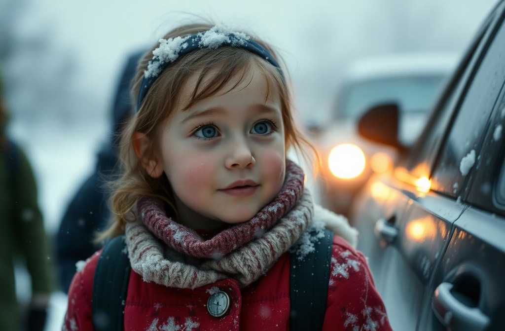 Сніг падав, наче крижані голки, з сірого неба, покриваючи розбиту дорогу товстим шаром. У цій безмежній білизні повільно, хитаючись, йшла крихітна постать — наче тінь, готова розтанути.