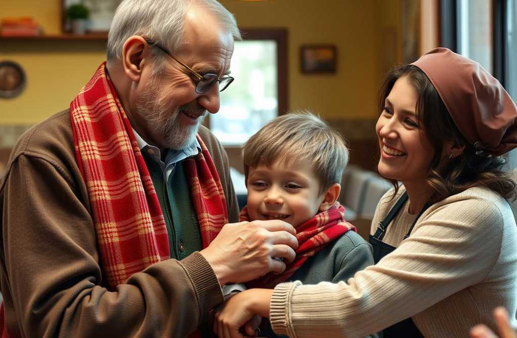 Одного разу, коли час був особливо тяжким для діда і внука, вона не витримала і зібрала їх у свою столову.