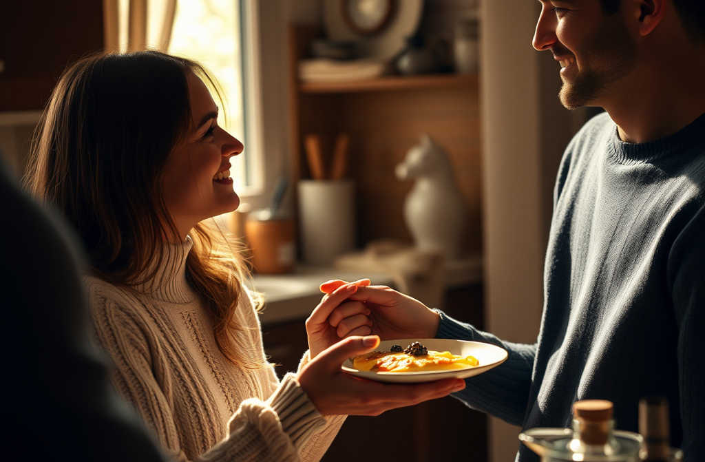 Олеся спокійно викладала покупки на кухонний стіл: глянцеві боки червоних перців, пузата баночка чорної ікри, важка грудка пармезану, пляшки вина. Кухня наповнювалась ароматами свіжого хліба та копченостей.
