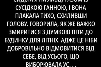 Мене завжди дивували старенькі бабці, які цілими днями можуть просидіти біля під’їзду та обговорювати кожного, хто пройде повз. Невже їм й справді так цікаво пліткувати про чуже життя та міряти всіх своїми мірками та колишніми часами. Все в них завжди не так, як було раніше. Як на мене, то ці люди просто застрягли у колишньому й ніяк не можуть звикнути, що часи змінилися.