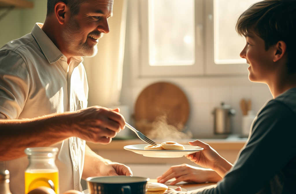 Щоранку на кухні пахне свіжими млинцями з медом найулюбленіша страва хлопця. Станіслав акуратно викладає їх гіркою й ставить перед пасинком.