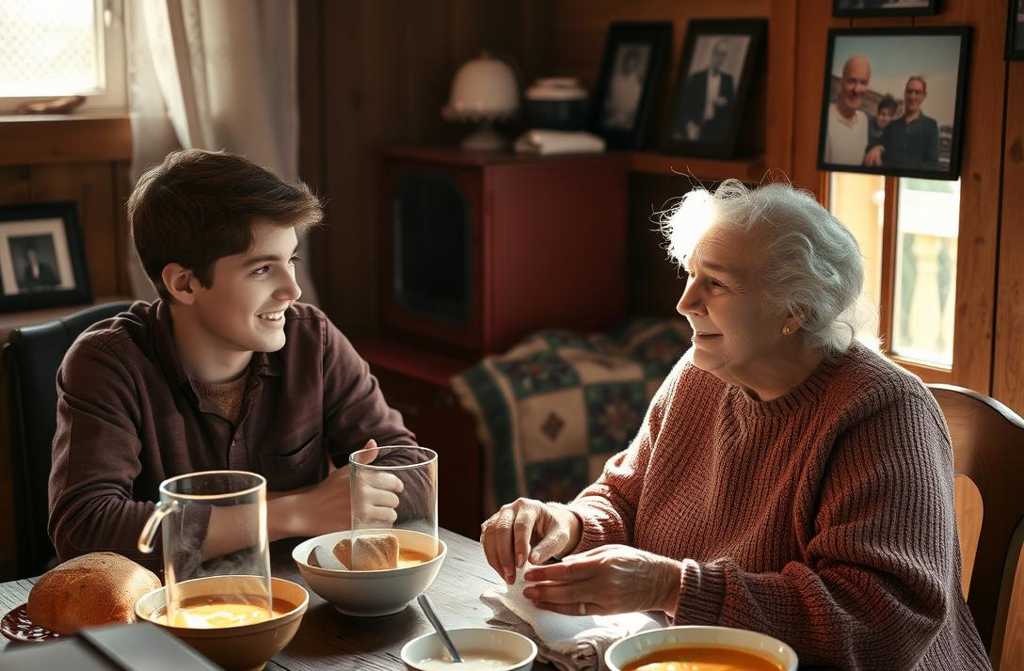Галина, не промовивши ні слова, дістала з печі чугунок, глянула на старі годинники на стіні, ніби натякаючи, що час обіду, і налила у глибоку миску наваристих борщу з кислої капусти. Додала шматок сала, цибулю й скибку житнього хліба з хрусткою скоринкою. Подумавши, поставила на стіл пляшку самогону. Її сутула спина, обмотана вовняною хусткою, здавалася крихкою, але у валянках вона рухалася впевнено, незважаючи на спеку в хаті.