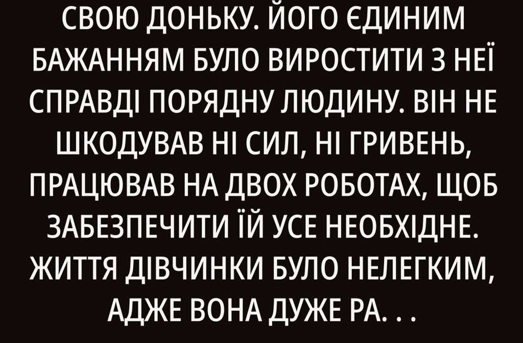 Чоловік самотужки виховував свою доньку. Його єдиним бажанням було виростити з неї справді порядну людину. Він не шкодував ні сил, ні гривень, працював на двох роботах, щоб забезпечити їй усе необхідне. Життя дівчинки було нелегким, адже вона дуже рано втратила маму.