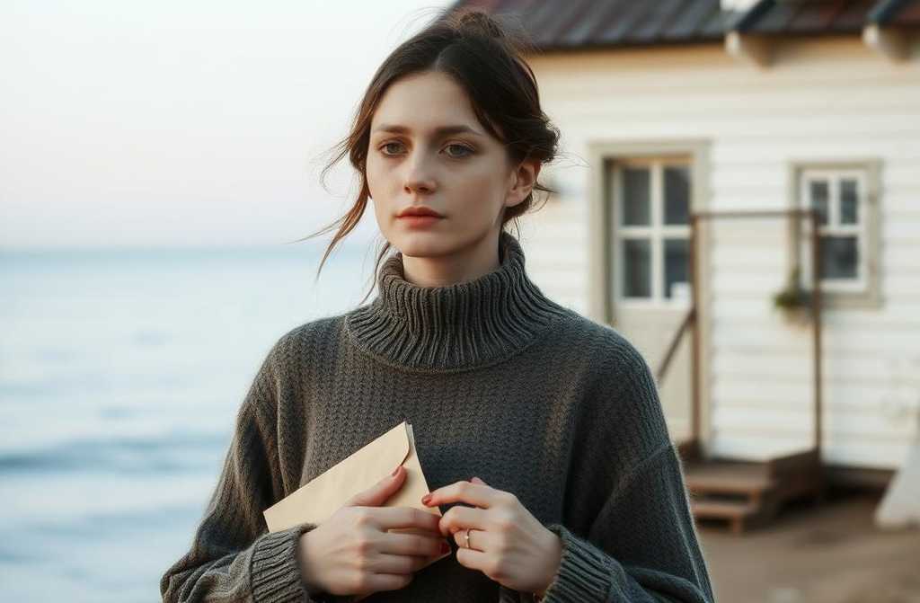 Ввечері вона постирала свитер. Той самий — грубий, важкий, рідний. Поки вода закипала в чайнику, вона просто стояла на кухні, слухала скрипи стін і свою самоту, що розпалась по кімнаті. І раптом — наважилася. Дістала лист. Розірвала край. Папір тріснув голосно, як лід під ногами.