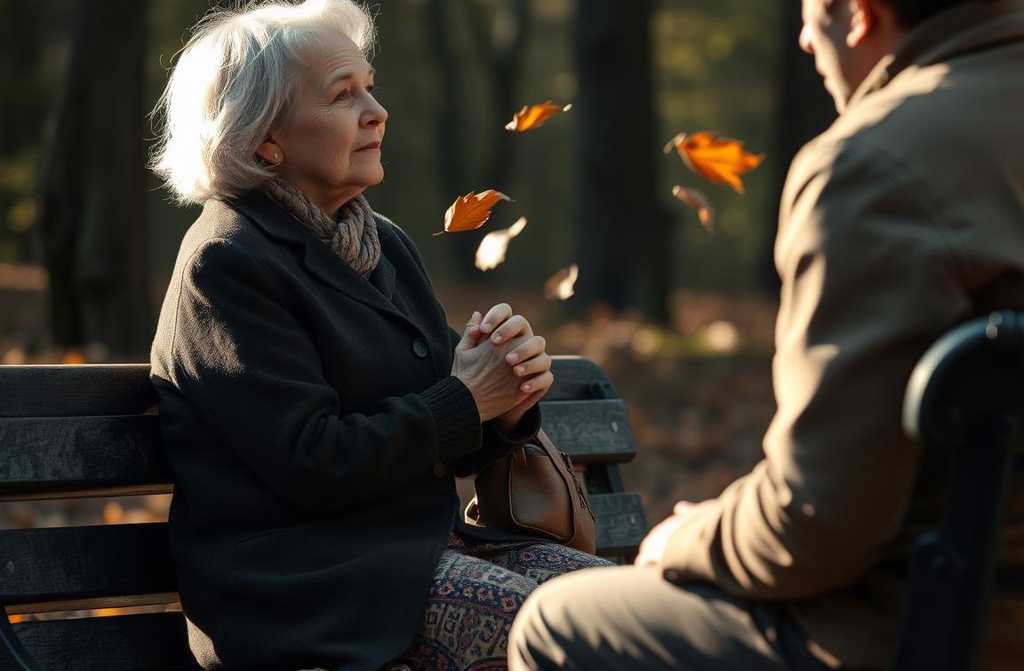 Наталя Олексіївна сиділа на лавці, згорблена, постаріла, але ще намагаючись зберегти сліди колишньої краси. Руки тремтіли.