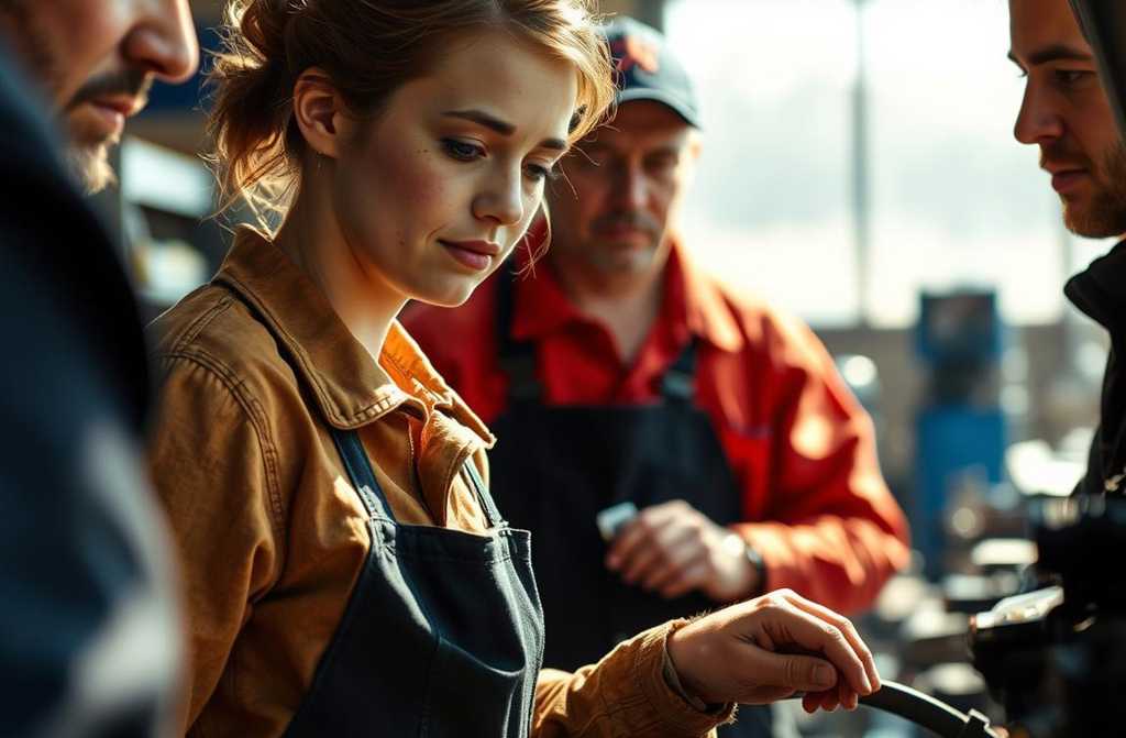 Марічка чула все. Стиснула ключ ще міцніше не через гайку, а щоб не вибухнути від люті. У цю мить один із механіків підійшов ззаду й раптово схопив її інструмент, начебто допомагаючи. *«Годі, ти й так забагато часу витратила»*. Але ніхто не очікував реакції Марічки. Бо саме ця мить стала поворотною.